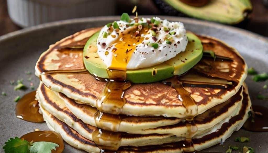 Σερβίρουμε τα pancakes με τυρί cottage, αβοκάντο, γαλοπούλα και κρέμα βαλσάμικου, επαναλαμβάνοντας τη διαδικασία για 2-3 στρώσεις.
